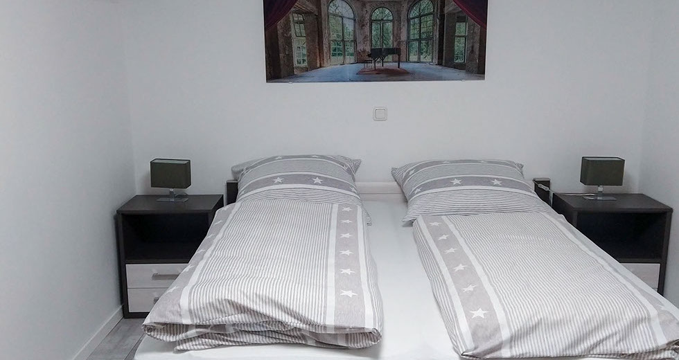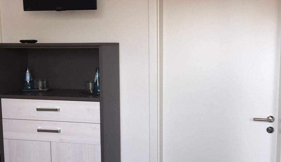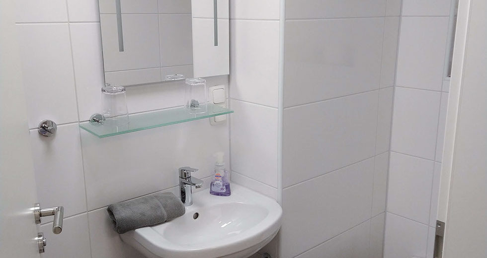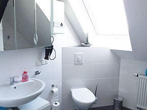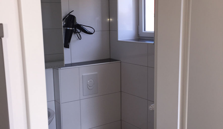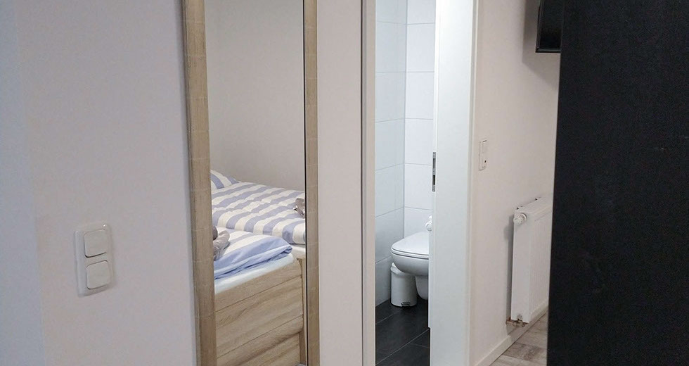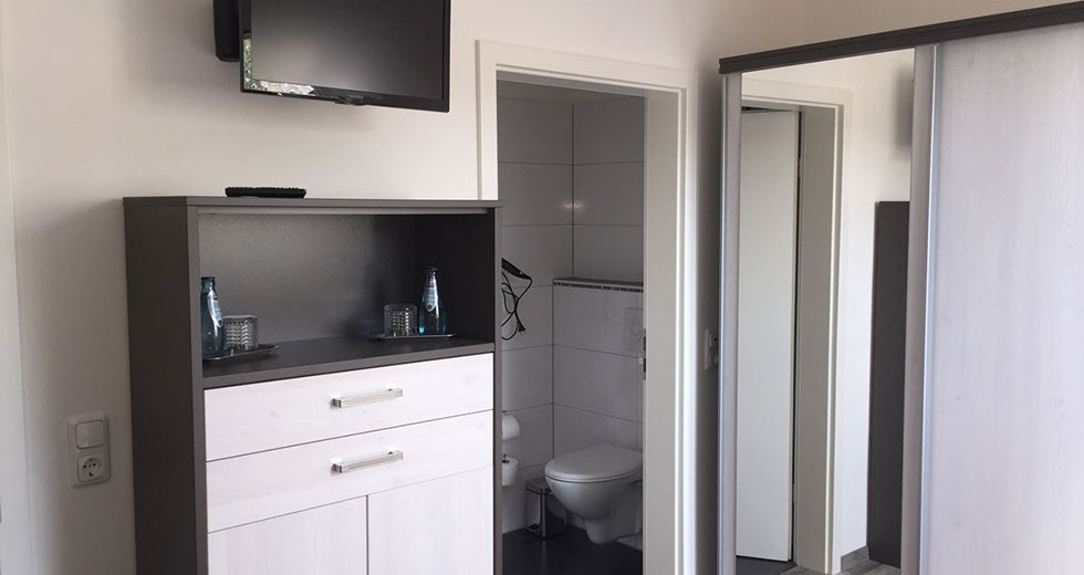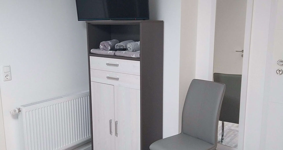 Jedes der Zimmer verfügt über ein eigenes Bad mit Dusche und WC.  Zudem ein Doppelbett, TV und WLAN. Desweiteren steht Ihnen ein Aufenthaltsraum mit Küchenzeile (ohne Kochmöglichkeit) aber mit Mikrowelle, Toaster, Kaffeemaschine und Geschirr zur Verfügung.